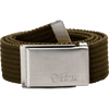 Product Description Canvas belt. Adjustable length and metal 'military' belt buckle.